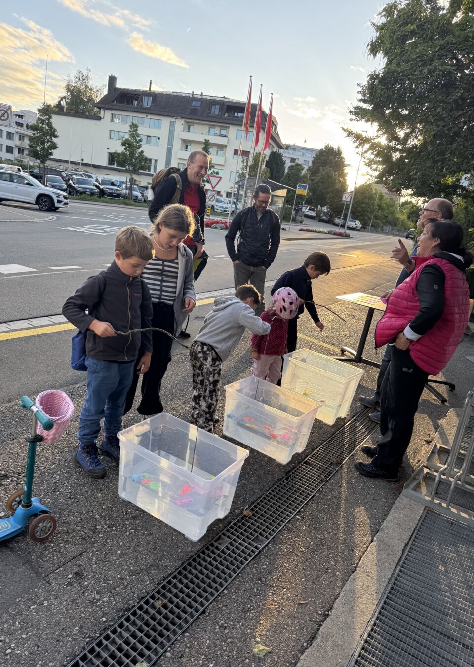 Nach einer kurzen Begrüssung und Instruktion durch Schulleiter Fabian Bucher starteten die Familien in kleinen Gruppen – jeweils drei Familien zusammen – unter dem Schulhausmotto «Zäme gaht’s besser» auf ihre nächtliche Entdeckungsreise durchs Dorf. An sieben kreativ gestalteten Posten an ausgewählten Orten warteten lustige Spiele und knifflige Rätsel: Ringwerfen mit Zielgenauigkeit, Hindernislauf, Kerzenlöschen im Dunkeln, Tabu, Torwandschiessen – und immer wieder die Suche nach dem Hinweis zum nächsten Posten, verborgen in Rätseln.