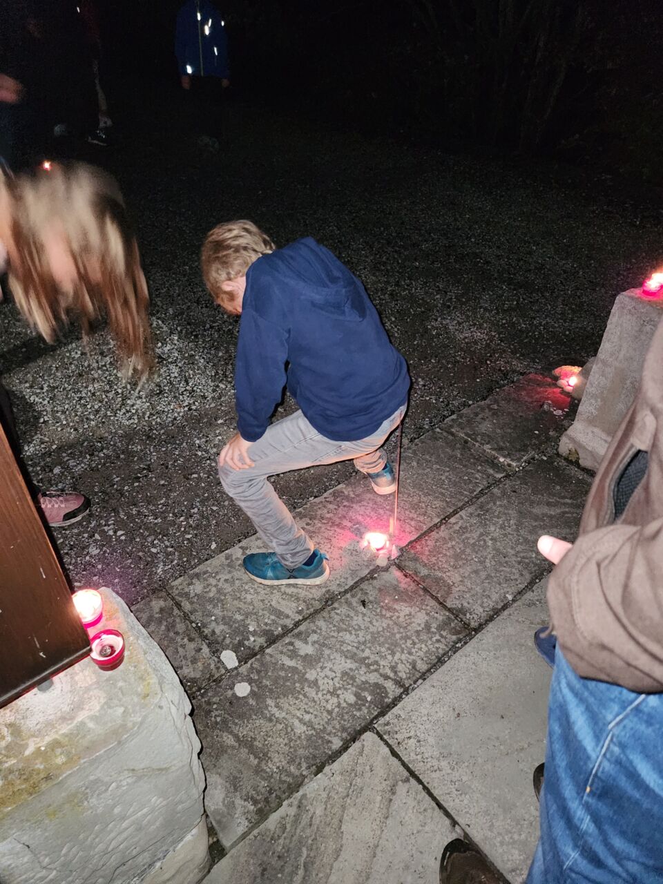 Im Zehn-Minuten-Takt begaben sich die Gruppen mit ihren Stirn- und Taschenlampen auf die rund 90-minütige Route. Die herbstliche Dunkelheit verlieh dem Rundgang eine besondere Atmosphäre, und so wurde jeder Posten zu einem kleinen Abenteuer im Lichtkegel der Lampen.